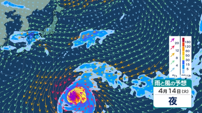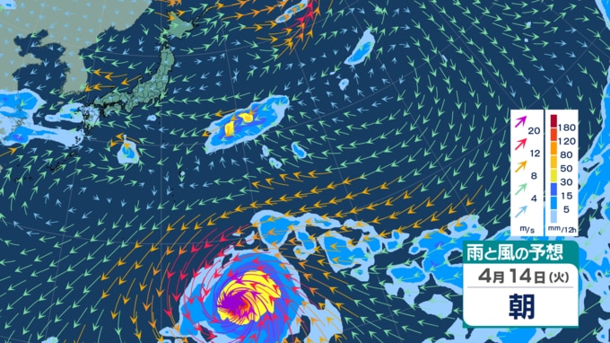【台風4号情報 14日午後4時過ぎ更新】徐々に右カーブ? 未だ大型で猛烈な勢力の“春の台風” 最大瞬間風速75 m/s・中心気圧920hPa 今後は東へ進路進めるか 最新進路予想や日本への影響は? 雨・風シミュレーション 青森テレビ 2026年4月14日(火) 14:35 国内 【4月14日】雨・風の予想シミュレーション【10日先まであり】 【雨・風の予想シミュレーションをまとめて見る】 (4月14日、15日~16日、17日~18日、19~20日、21日~22日、23日~24日) 【この記事を最初から読む】