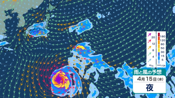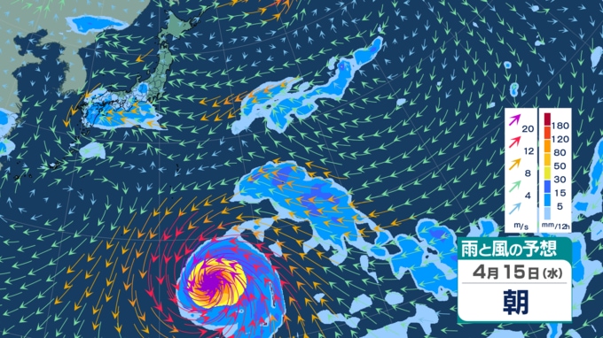 【台風4号情報 14日午後4時過ぎ更新】徐々に右カーブ? 未だ大型で猛烈な勢力の“春の台風” 最大瞬間風速75 m/s・中心気圧920hPa 今後は東へ進路進めるか 最新進路予想や日本への影響は? 雨・風シミュレーション 青森テレビ 2026年4月14日(火) 14:35 国内 【4月15日】雨・風の予想シミュレーション【10日先まであり】 【雨・風の予想シミュレーションをまとめて見る】 (4月14日、15日~16日、17日~18日、19~20日、21日~22日、23日~24日) 【この記事を最初から読む】