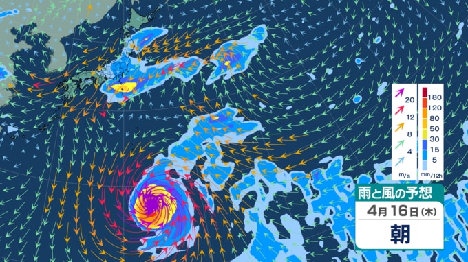 【台風4号情報 14日午後4時過ぎ更新】徐々に右カーブ? 未だ大型で猛烈な勢力の“春の台風” 最大瞬間風速75 m/s・中心気圧920hPa 今後は東へ進路進めるか 最新進路予想や日本への影響は? 雨・風シミュレーション 青森テレビ 2026年4月14日(火) 14:35 国内 【4月16日】雨・風の予想シミュレーション【10日先まであり】 【雨・風の予想シミュレーションをまとめて見る】 (4月14日、15日~16日、17日~18日、19~20日、21日~22日、23日~24日) 【この記事を最初から読む】