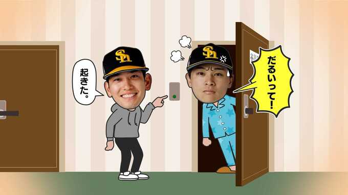 栗原「キャンプ中に部屋が横の横とかだったんですよ。僕がご飯に行ったり、帰りが遅くなったりした時に、絶対に僕、ピンポンを連打するんですよ、あいつの部屋を。あいつ絶対寝てるんですけど、絶対出てくれるんですよ、何時だろうと。絶対に出てきて『だるいって!』と言って。そういう絡みをして可愛いなと」