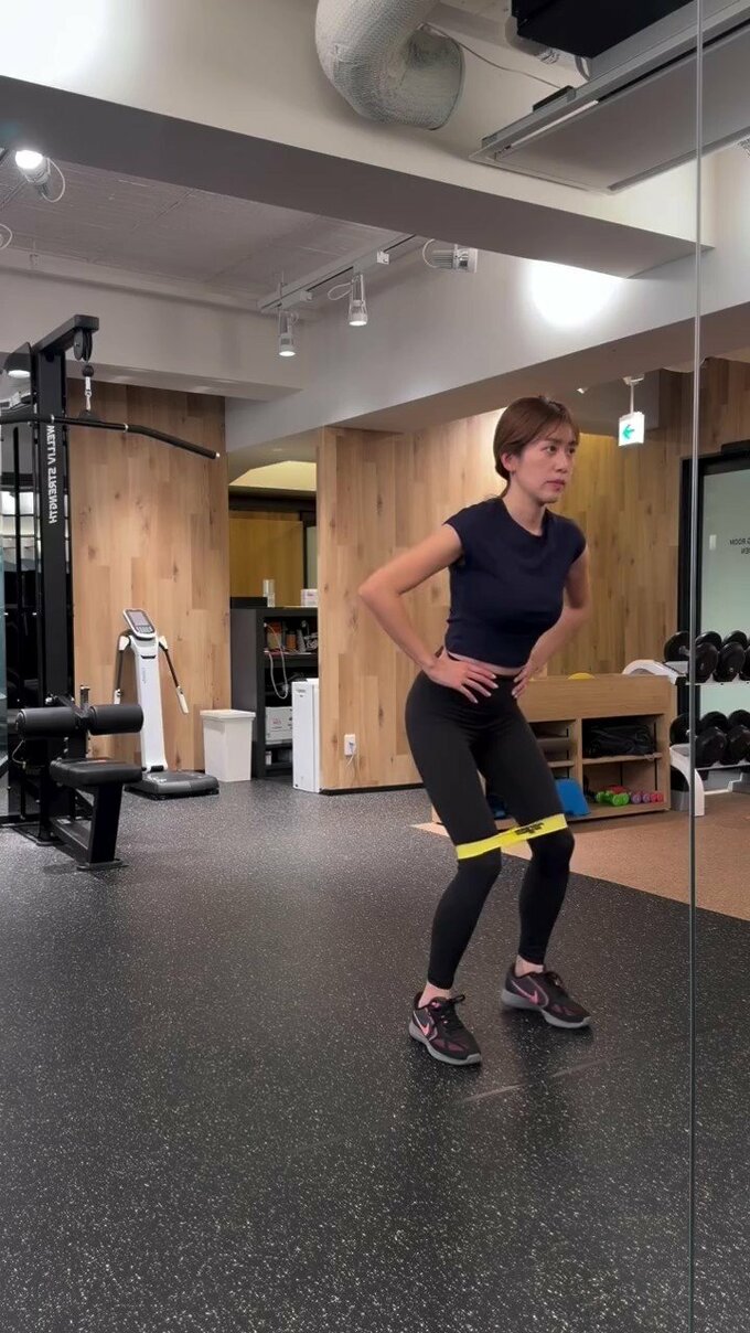 動画では、ネイビーのトップスに黒いレギンス姿の中川さんが、ジムで様々なパーソナルトレーニングに取り組む姿が収められています。