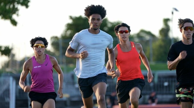 その後、芝の上で100mを8本、トラックで250mを3本走り抜いた。1本走るごとに、撮影した動画で動きを確認。練習の1本1本がメダルにつながる道となる。