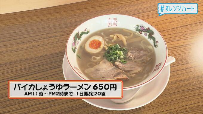 1日20食限定の「パイカしょうゆラーメン」は、豚骨ベースのしょうゆスープに、自家製麺、半熟卵、青ねぎ、そしてトッピングにチャーシューとパイカ(豚のバラ軟骨)がのったボリューミーなラーメンです。