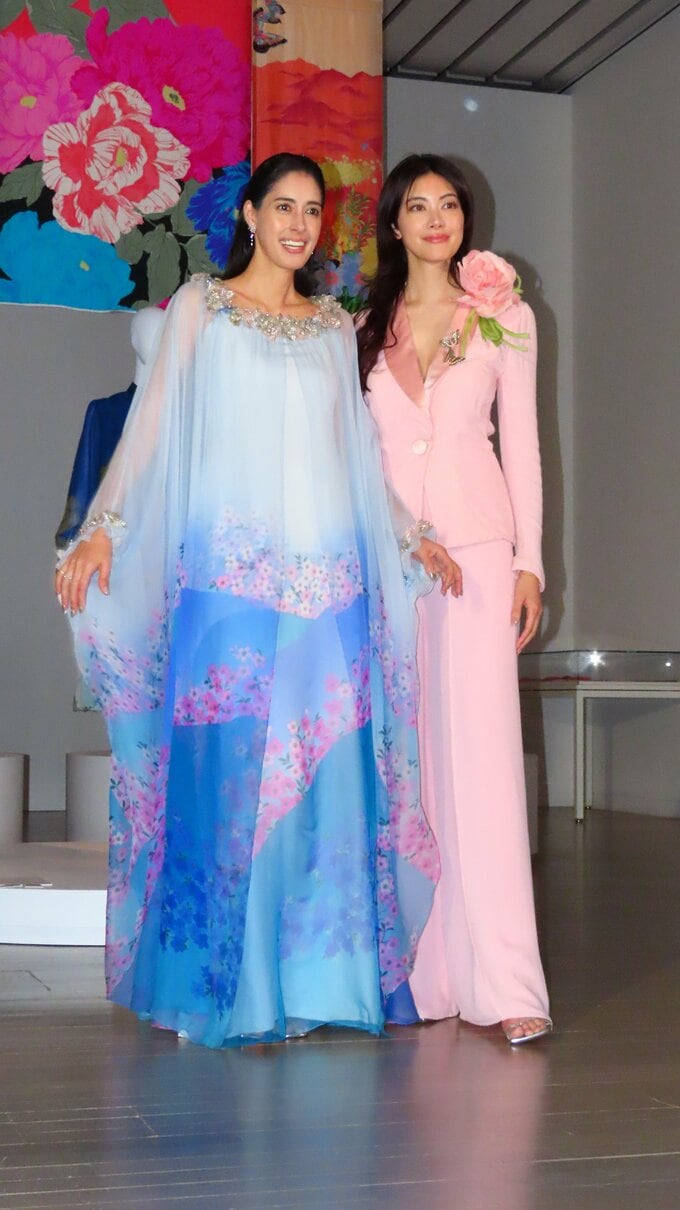 森英恵さんの孫である泉さんと星さんはこの日、森さんがデザインした衣装でイベントに登場。一足先に姉妹で展示を見て回ったと話す星さんは〝最初に見るのが泉で良かった〟と微笑むと、泉さんも〝ママ森(森英恵さんの愛称)、喜んでくれているかな?〟と天を見上げながら笑顔を見せました。