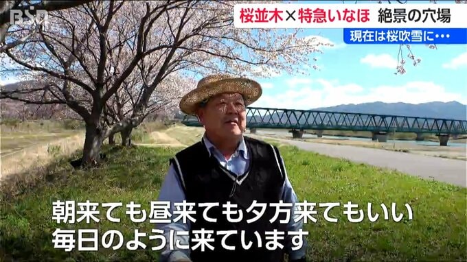 【花見の市民は】「1時間に1度くらいは(電車が)来るかな?朝来ても昼来ても夕方来てもいい、毎日のように来ています。こっちから見た景色がすごくいい。毎年写真を撮って帰る」