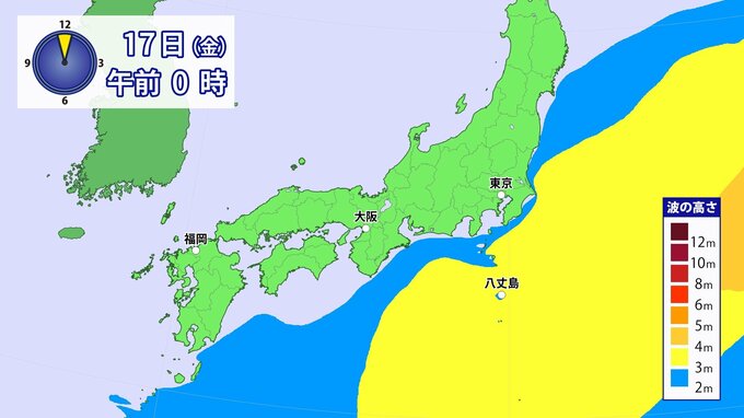17日~18日小笠原諸島で警報級の高波となるおそれ