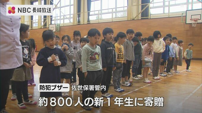 防犯ブザーは、佐世保警察署管内の小学校に通うおよそ800人の新1年生に贈られます。