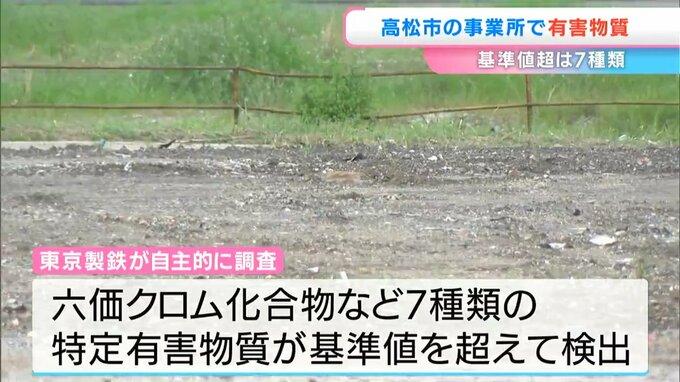 高松市によりますと、東京製鐵が敷地の一部について自主的に調査したところ、10m四方に区切った約500の区画のうち388区画の土壌から、発がん性がある六価クロム化合物など7種類の特定有害物質が基準値を超えて検出されたということです。