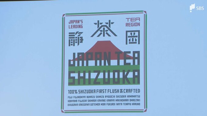 「まず、赤富士、その前に茶畑があり、そこに印象的なロゴタイプで『JAPAN TEA SHIZUOKA』」