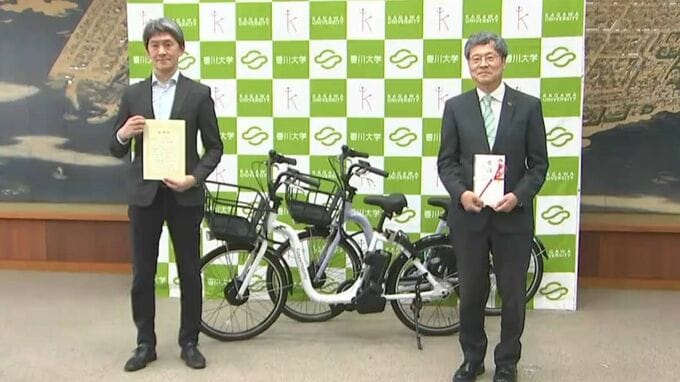 学生の研究活動に役立てもらおうと、電動アシスト自転車が香川大学に寄贈されました。
