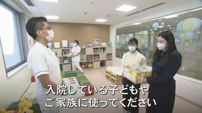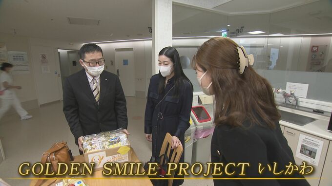14日、金沢医科大学の小児病棟に届けられたのは絵本12冊とプレゼント40個。小児がんを経験した人やその家族などで構成する、「GOLDEN SMILEPROJECT いしかわ」が寄付しました。
