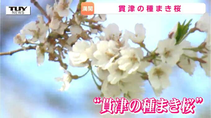 山の裾野にそびえ立つエドヒガンザクラ。「貫津の種まき桜」と呼ばれています。樹齢はなんと400年をこえるそう。幹が太くて立派ですよね。