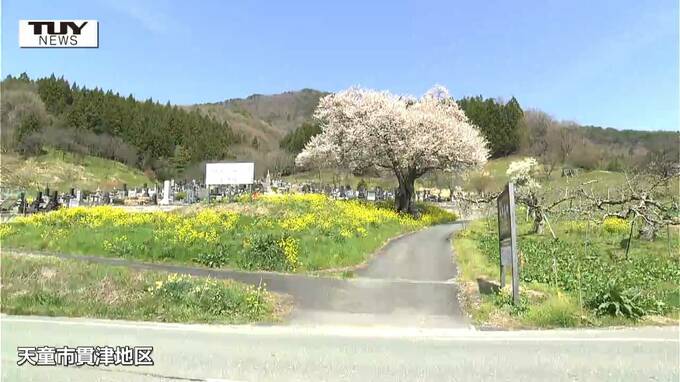 「道の駅・天童温泉」からおよそ1キロ。天童市・貫津地区の道路沿いに大きな一本桜があります。