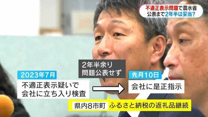 このため、県内では8つの市と町が、問題を知らないまま、水迫畜産の商品をふるさと納税の返礼品として扱っていました。
