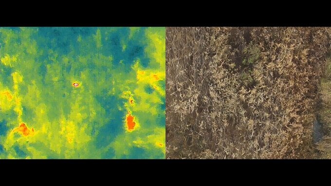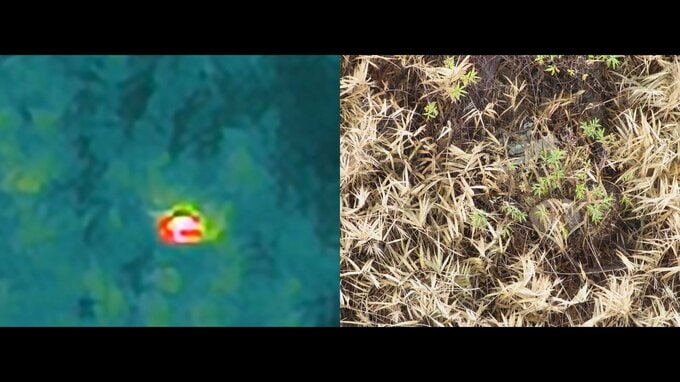 肉眼では困難な捜索に光 温度センサー付きドローンがクマ発見の切り札となるか 実証実験で見えた可能性 岩手 IBC岩手放送 2026年4月14日(火) 19:28 国内 【画像はこちらから】 赤い点に対して 【画像はこちらから】 カメラをズームしていくと・・・・ 【画像はこちらから】 【画像はこちらから】 今回の検証では、クマの発見には至りませんでしたが、草むらの中にいる鳥などの生物を確認することができました。 万一、クマが潜んでいた場合は、個体が大きいことから、発見がより容易になると思われます。 また、同じ目線では見つけられないものも、上空から見ることで場所を把握できるほか、さらに温度を検知することで発見も可能となります。
