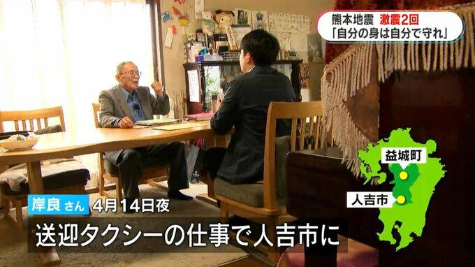 前震が発生した10年前の4月14日の夜。岸良さんは自衛隊退職後に始めた送迎タクシーの仕事で、熊本県の人吉市にいました。岸良さんは4人暮らしで、妻と娘2人は県外にいました。