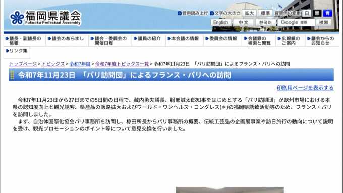 2025年11月に行われたパリの視察では、視察先や会談した相手、意見交換のテーマなどが記載されているものの、具体的な内容がわかる記述はありません。