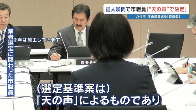 熊本県八代市の庁舎建設をめぐる市議会の百条委員会で証人喚問が行われ、八代市の職員2人が「“天の声”の指示で建設業者の選定基準が決められていた」などと証言しました。業者選定に関わった市職員「選定基準案…