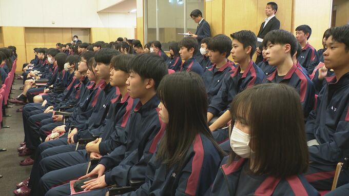 教室は大手通信キャリアのKDDIが「eネットキャラバン」と題して開催し、金沢錦丘高校の1年生320人が参加しました。