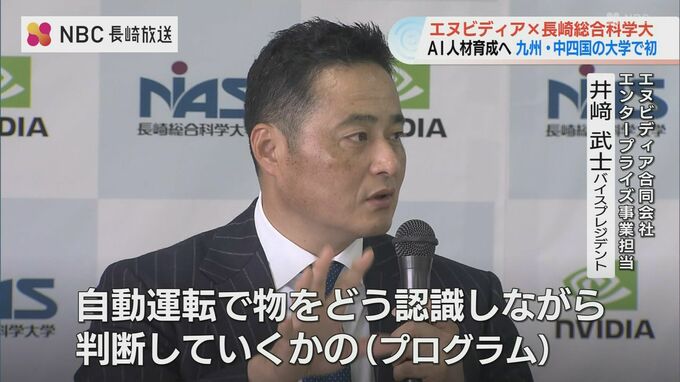 エヌビディア合同会社 エンタープライズ事業担当 井崎武士バイスプレジデント:「(例えば)Chat GPTみたいなものをどう実現するか。自動運転で物をどう認識しながら判断していくかの(プログラム)。学生が最初からAIを学んでいきながら実際に社会に出た時に、AIがあって当たり前の考え方をしてくるようになってくると、非常に大きく産業は変わってくると思う。」