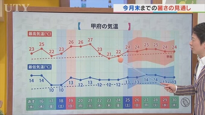 朝の最低気温は連日平年よりも気温が高めの状況となりますので、25℃前後だとやっぱり半袖の出番となりますから、半袖まだ出してないよという方はもう早めに出した方がいいと思いますので、衣替えの準備も適宜進めておいてはいかがでしょうか?