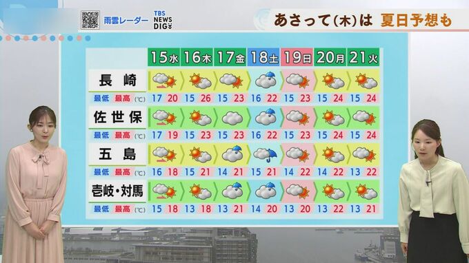 14日(火)は午後4時過ぎから県南部を中心に雨の降り方が強まりました。長崎市内では女神大橋も見えないほど見通しが悪くなり、一時的に見通しも今悪くなりました。■天気ゆっくり回復へ15日(水)の見通し15日(…