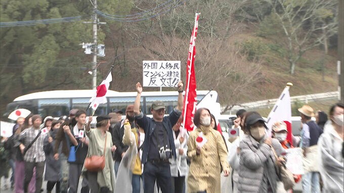開発業者が2024年に開いた地元説明会で、マンションに住む人の想定について「中国40%、香港・台湾40%」などと説明したことがインターネットなどで広まり、反対デモも起きていました。