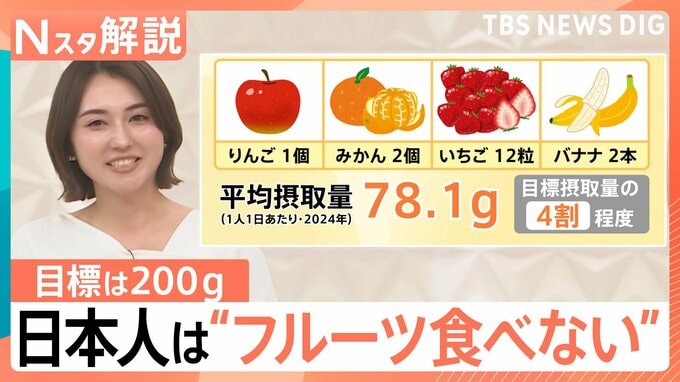 みなさんは毎日フルーツを食べていますか?実は日本人のフルーツを食べる量は、50年ほどで半減しているということです。なぜ“フルーツ離れ”が起きているのでしょう。山形純菜キャスター:厚労省によると、1日の…