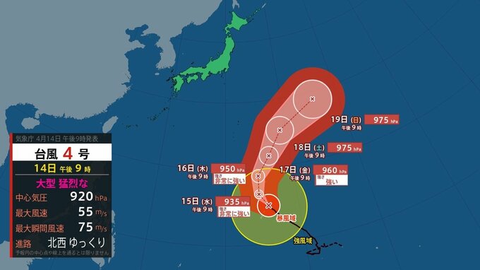 【台風情報】「台風第4号(シンラコウ)」の実況・予報