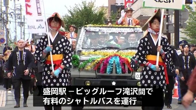 2026年は、2025年並みの18万9000人の人出を見込んでいて、当日はJR盛岡駅とビックルーフ滝沢の間で有料のシャトルバスを運行します。