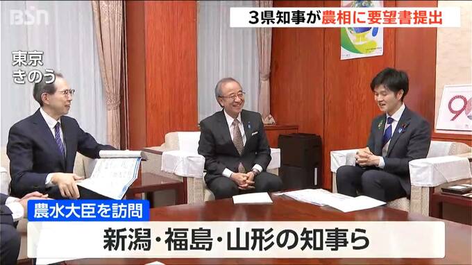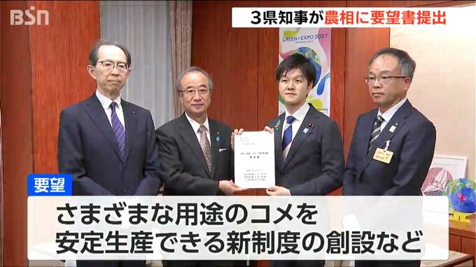 3つの県の知事らはこのほか、主食用米だけではなく、酒米や加工用米など様々な用途のコメを安定して生産できる、新たな制度の創設なども求めました。