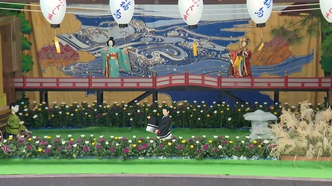 福島八幡宮の境内で、国の重要無形民俗文化財に指定されているからくり人形芝居「八女福島の灯籠人形」が披露され、その周辺に屋台が立ち並ぶなどまちが一気にお祭りムードに包まれます。