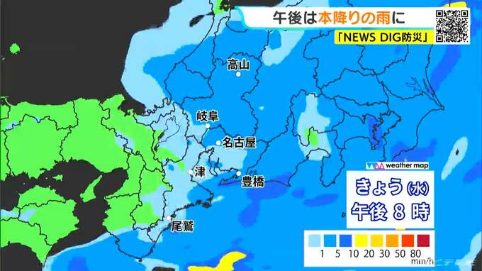 東海地方 きょう午後から本降りの雨 あす未明には天気回復 最高気温25℃の所も 愛知・名古屋・岐阜・三重の天気予報(4/15 昼)