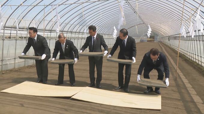 その後、種もみが入ったポットをビニールハウスへ運び種まきを意味する「播種」の儀で豊作を祈りました。