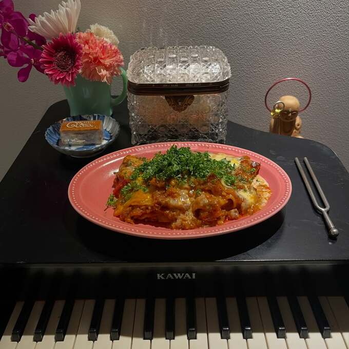 池田さんは「オーブンでラザニアを作りました!」「これはモーリーが絶対欲しがるやつなので、まずはお供え」と、モーリーさんの祭壇となったミニピアノの上に、焼き上がったばかりのラザニアを載せたショットを投稿しています。池田さんは「オーブン料理が好きだったモーリーのために導入したオーブン」と振り返り、「えーい!これからフル稼働してやる!」と前向きな思いを明かしています。