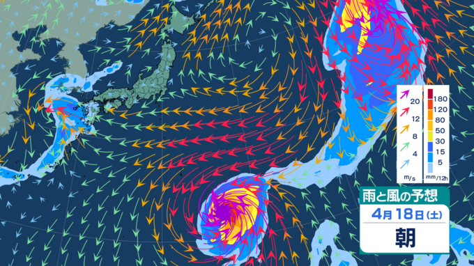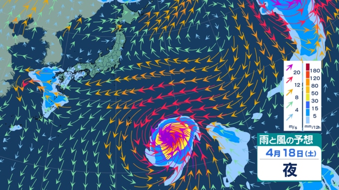 【台風情報 15日午後4時過ぎ更新】大型で「非常に強い勢力」の台風4号 20日にも温帯低気圧に変わるか 徐々に右へ…右へ… 最大瞬間風速65m/s・中心気圧935hPa 日本への影響は? 最新の雨・風シミュレーションあり 青森テレビ 2026年4月15日(水) 14:25 国内 【4月18日】雨・風の予想シミュレーション 【雨・風の予想シミュレーションをまとめて見る】 (4月15日、16日~17日、18日~19日、20日~21日、22日~23日、24日~25日) 【この記事を最初から読む】