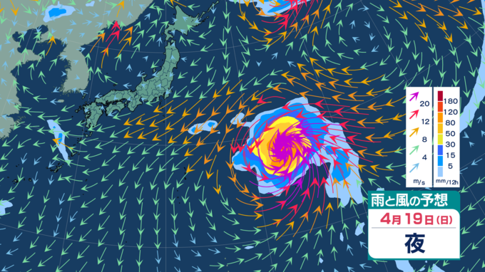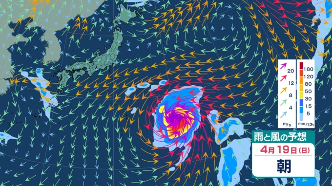 【台風情報 15日午後4時過ぎ更新】大型で「非常に強い勢力」の台風4号 20日にも温帯低気圧に変わるか 徐々に右へ…右へ… 最大瞬間風速65m/s・中心気圧935hPa 日本への影響は? 最新の雨・風シミュレーションあり 青森テレビ 2026年4月15日(水) 14:25 国内 【4月19日】雨・風の予想シミュレーション 【雨・風の予想シミュレーションをまとめて見る】 (4月15日、16日~17日、18日~19日、20日~21日、22日~23日、24日~25日) 【この記事を最初から読む】