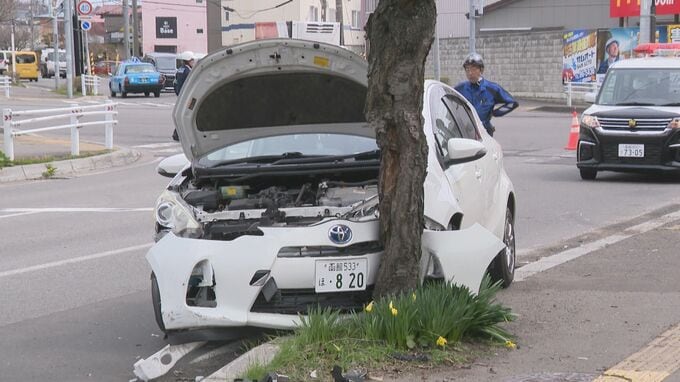 15日午前、北海道函館市の交差点で、車3台が絡む多重事故があり、そのうち2台がはずみで街路樹に衝突しました。この事故で50代とみられる男性が意識不明の状態で病院に運ばれました。