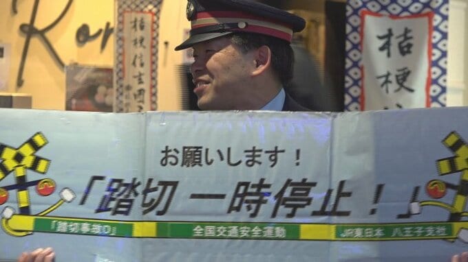 参加者はJR甲府駅で踏切を渡る時の注意点が書かれたクリアファイルなどを配り、踏切での事故は命に関わる大きな事故につながりやすく無理な横断はやめてほしいと呼びかけました。