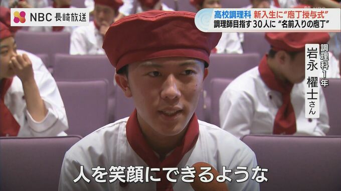 調理科1年 岩永櫂士さん:「料理の基礎をしっかりと身につけて、人を笑顔にできるような調理師になれるよう頑張っていきたいです」