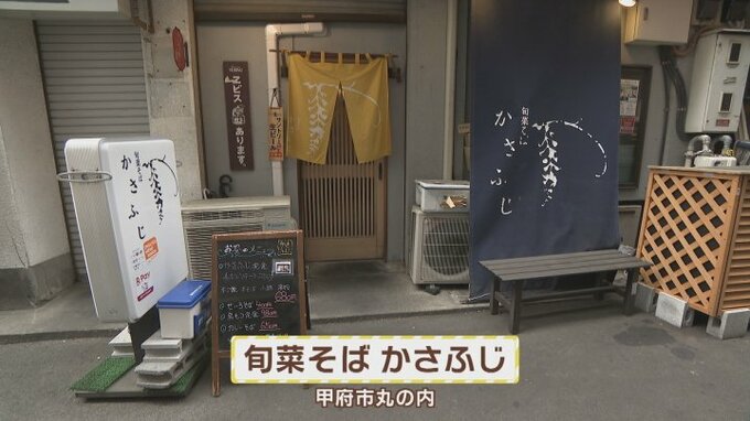 甲府駅南口、甲府ちょうちん横丁にある「旬菜そば かさふじ」です。