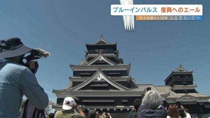 ▼「熊本はまだまだがんばれる!」熊本地震から10年 大空からブルーインパルスが熊本にエール
