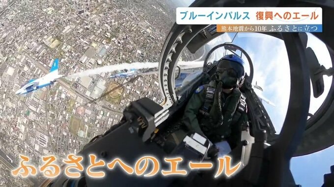 ブルーインパルスパイロット 松永大誠 3等空佐「二の丸公園に集まった人が多すぎて、上空から見ると真っ黒になっていました。いつか熊本のために恩返しをしたいという思いを胸にブルーインパスに入って、なんとか自分のラストフライトという形で熊本のみなさんにエールを贈ることができてありがたいと思いながら飛行しました」