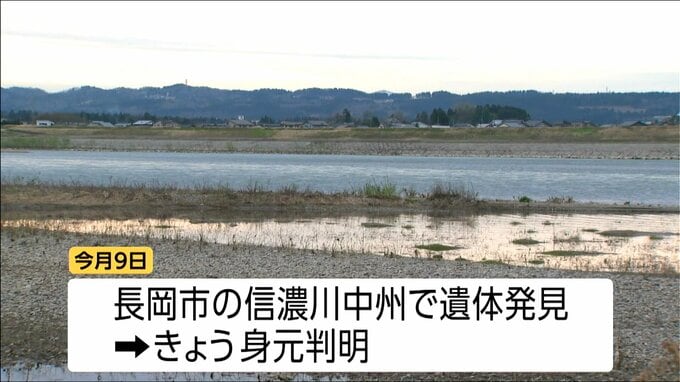 警察によりますと、4月9日に長岡市の信濃川河川敷で石拾いをしていた男性が、中州に遺体が流れ着いているのを見つけて110番通報していていたもので、その後の警察の調べで15日に身元が判明しました。
