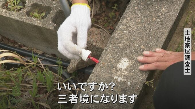 住民「このへんにしときますか」「そんな境にせんと、こっち」「瓦あるこっちにしときますか、いいですか?三者境になります」