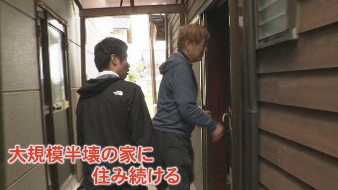 中村さんは大規模半壊の判定を受けた家に住み続けています。