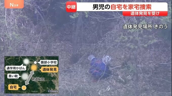 遺体発見を受け安達結希さんの自宅を家宅捜索 死体遺棄の疑い 警察は近隣住宅の防犯カメラなど確認か 京都・南丹市 TBSテレビ 2026年4月15日(水) 16:19 国内 司法解剖が行われるも死因はわからず そして、おととい、小学校から南西におよそ2キロ、自宅からは北東に8キロほど離れた山林で安達さんの遺体が見つかりました。きのう、司法解剖が行われましたが、死因はまだわかっていません。死亡したのは先月下旬ごろだということです。