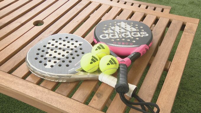 早速、体験スタート!道具はテニスよりも小さめな板状のラケットを使います。