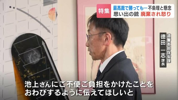 最高裁判決の約2週間後、池上さんにライフル銃が返還されましたが、来たのは北海道警察の担当者。北海道公安委員会からの直接の説明や謝罪はありません。