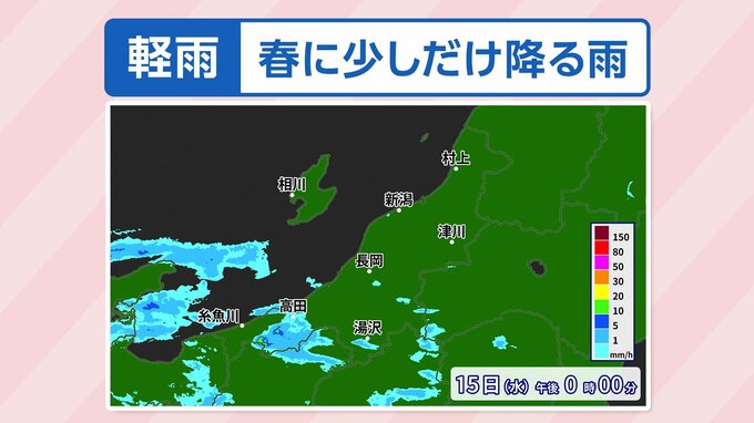 15日の新潟市内のように、“春に少しだけ降る雨”のことを『軽雨』と言います。